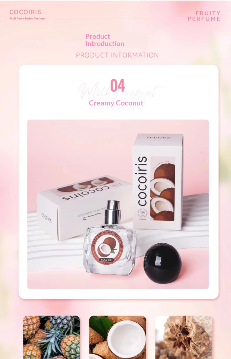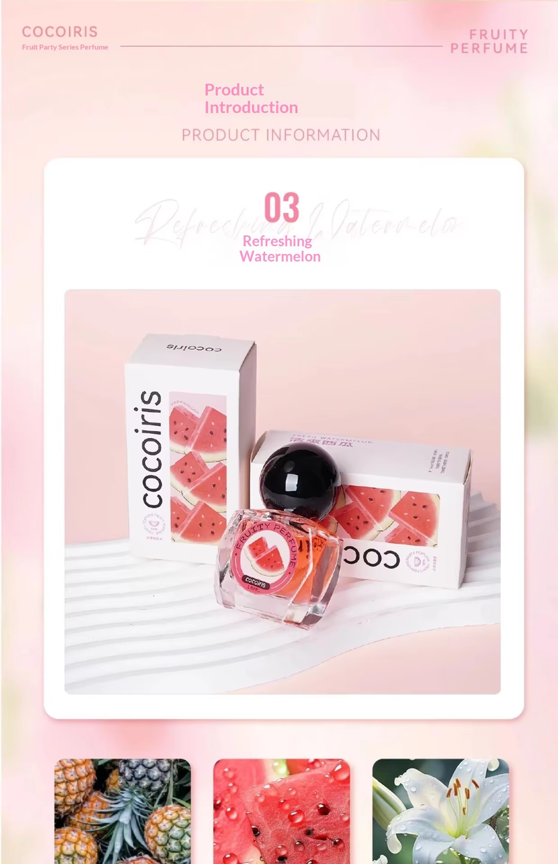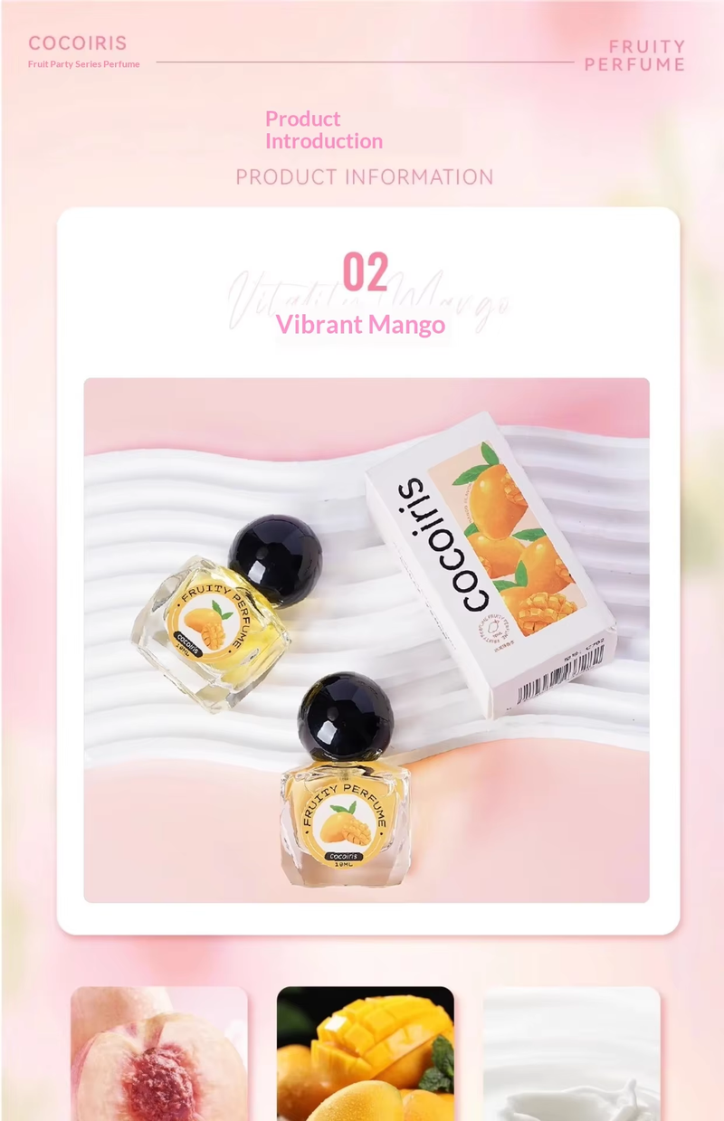 Fruit Party Perfume: Delicate, clean, and sweet without being cloying, with a refreshing tropical scent
