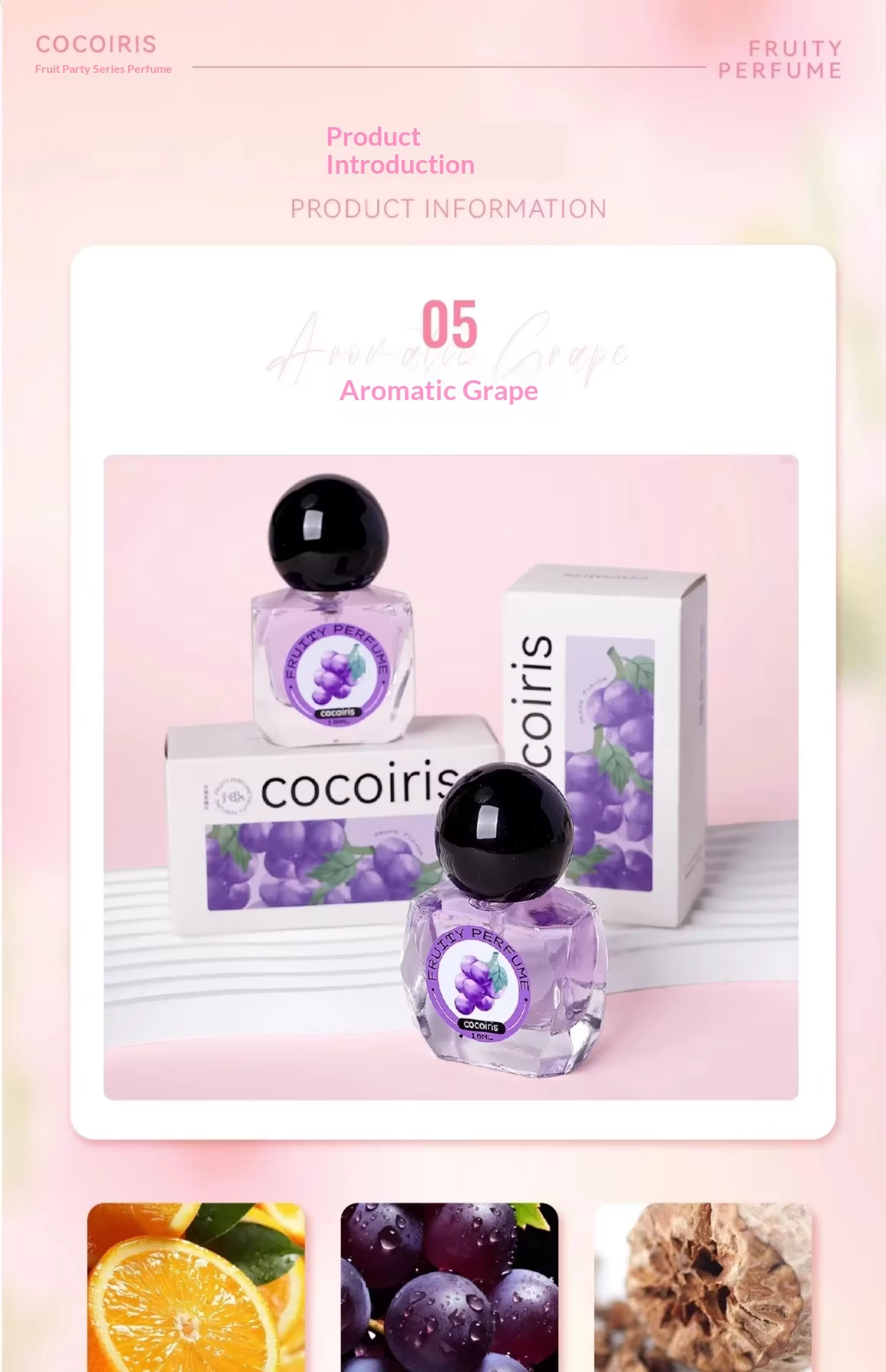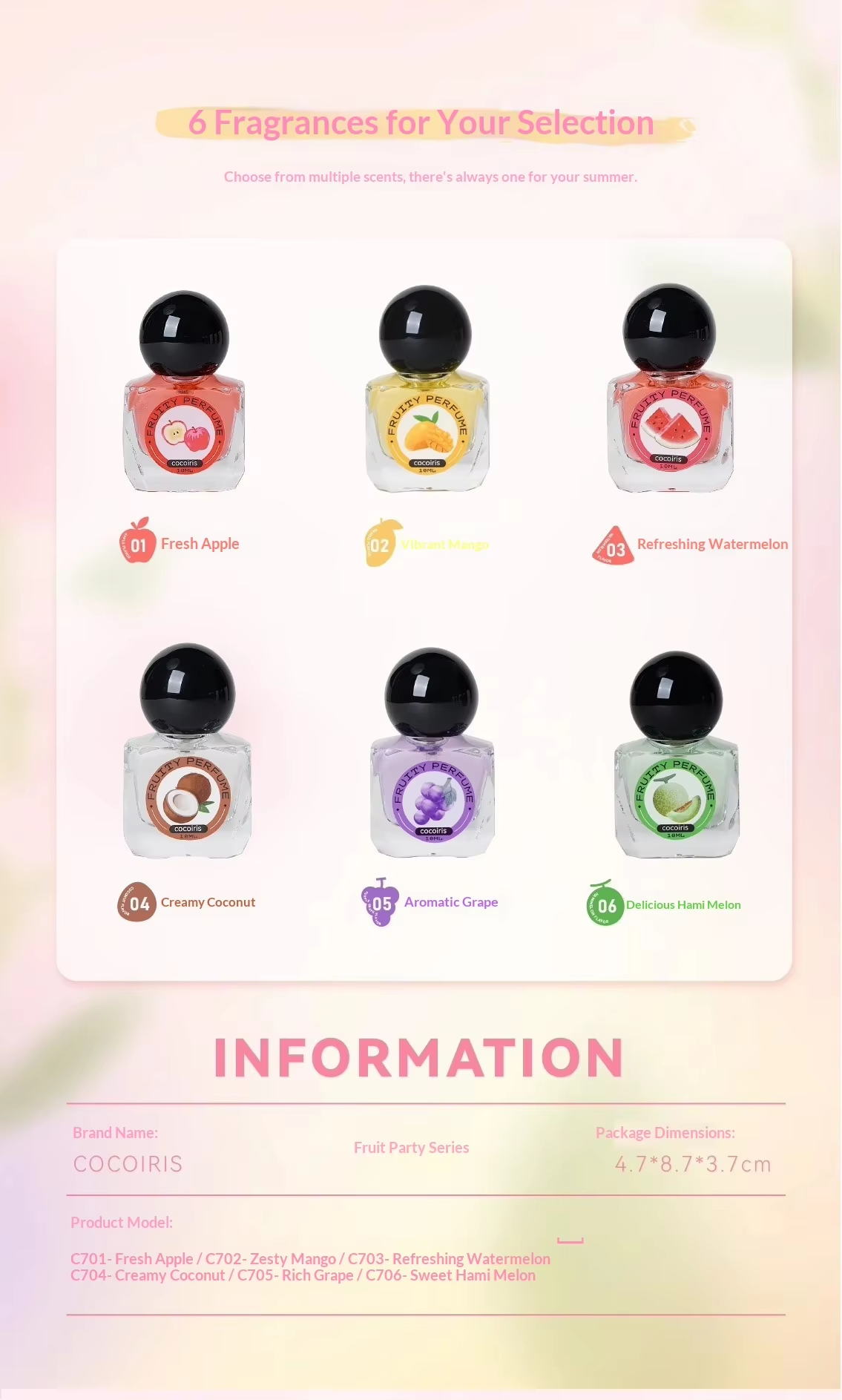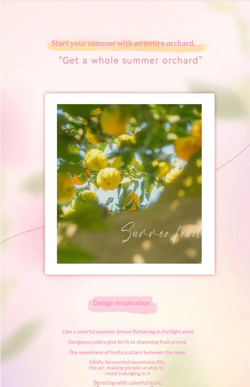 Fruit Party Perfume: Delicate, clean, and sweet without being cloying, with a refreshing tropical scent
