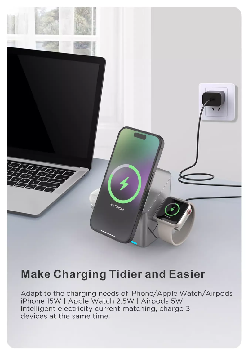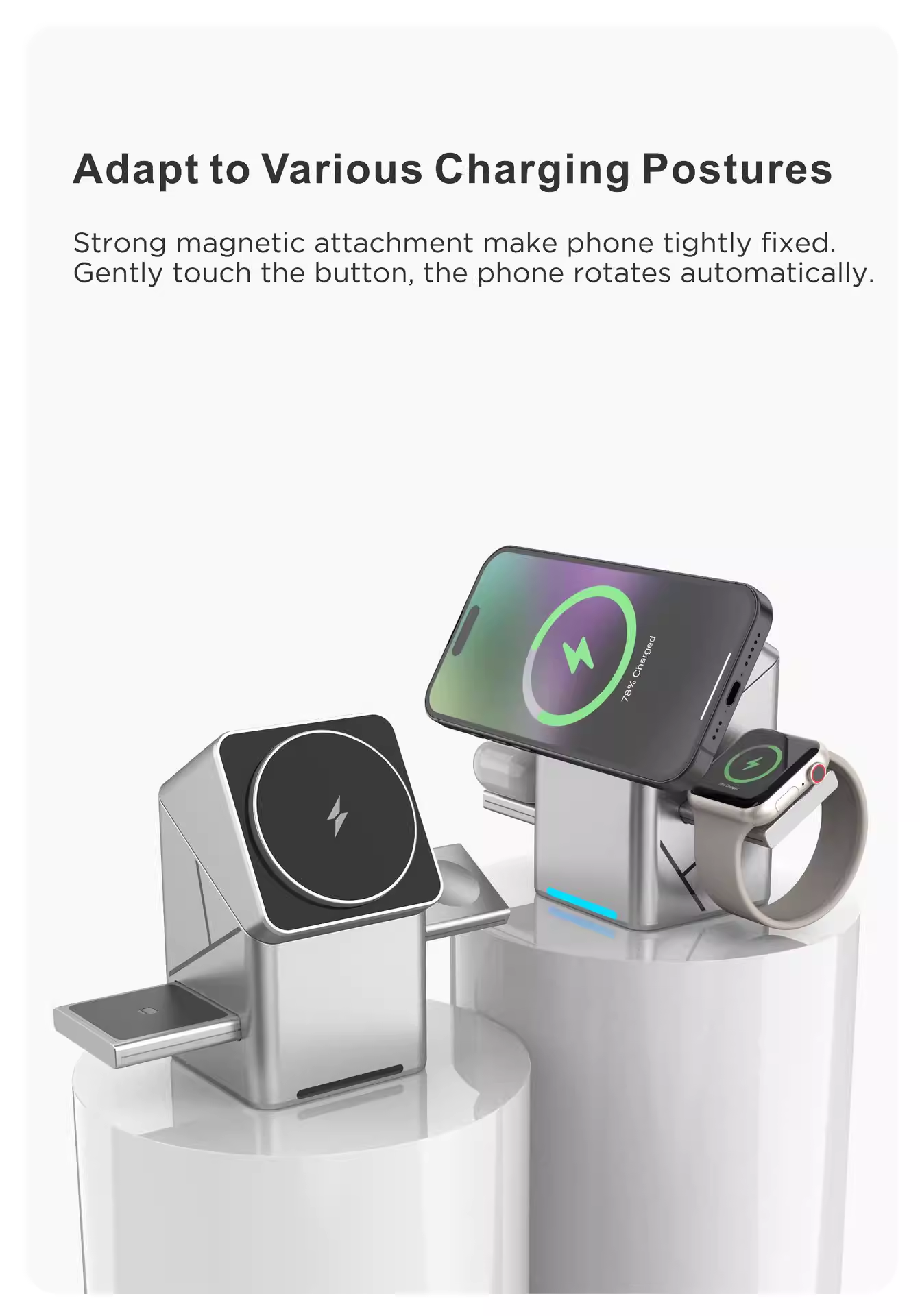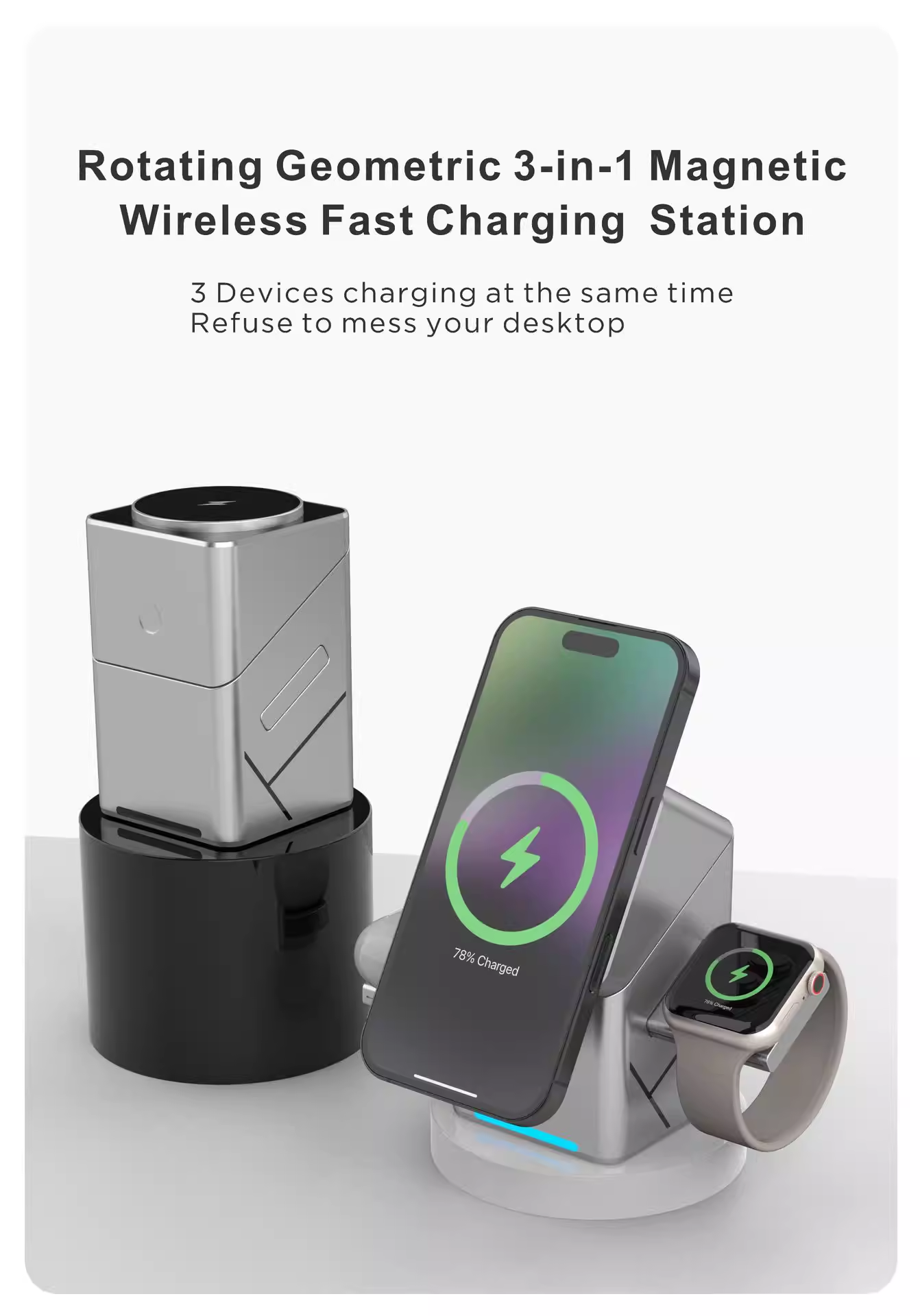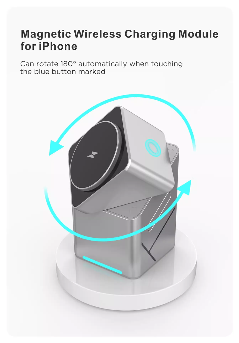 Magic Cube Smart Rotating 3-in-1 Wireless Charger with Magnetic Attachment, N52 Fast Charging, MagSafe Wireless Charger and Phone Stand