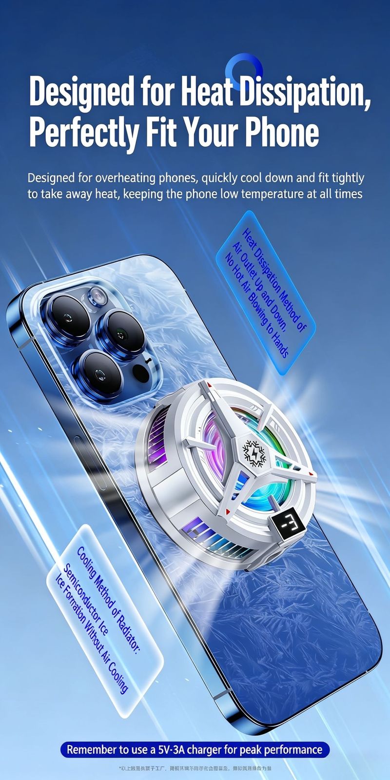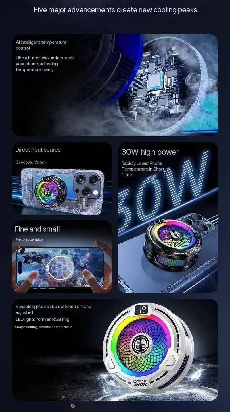 New magnetic semiconductor phone cooler with multi-speed adjustment for instant cooling complimentary magnetic phone mount and charging cable included
