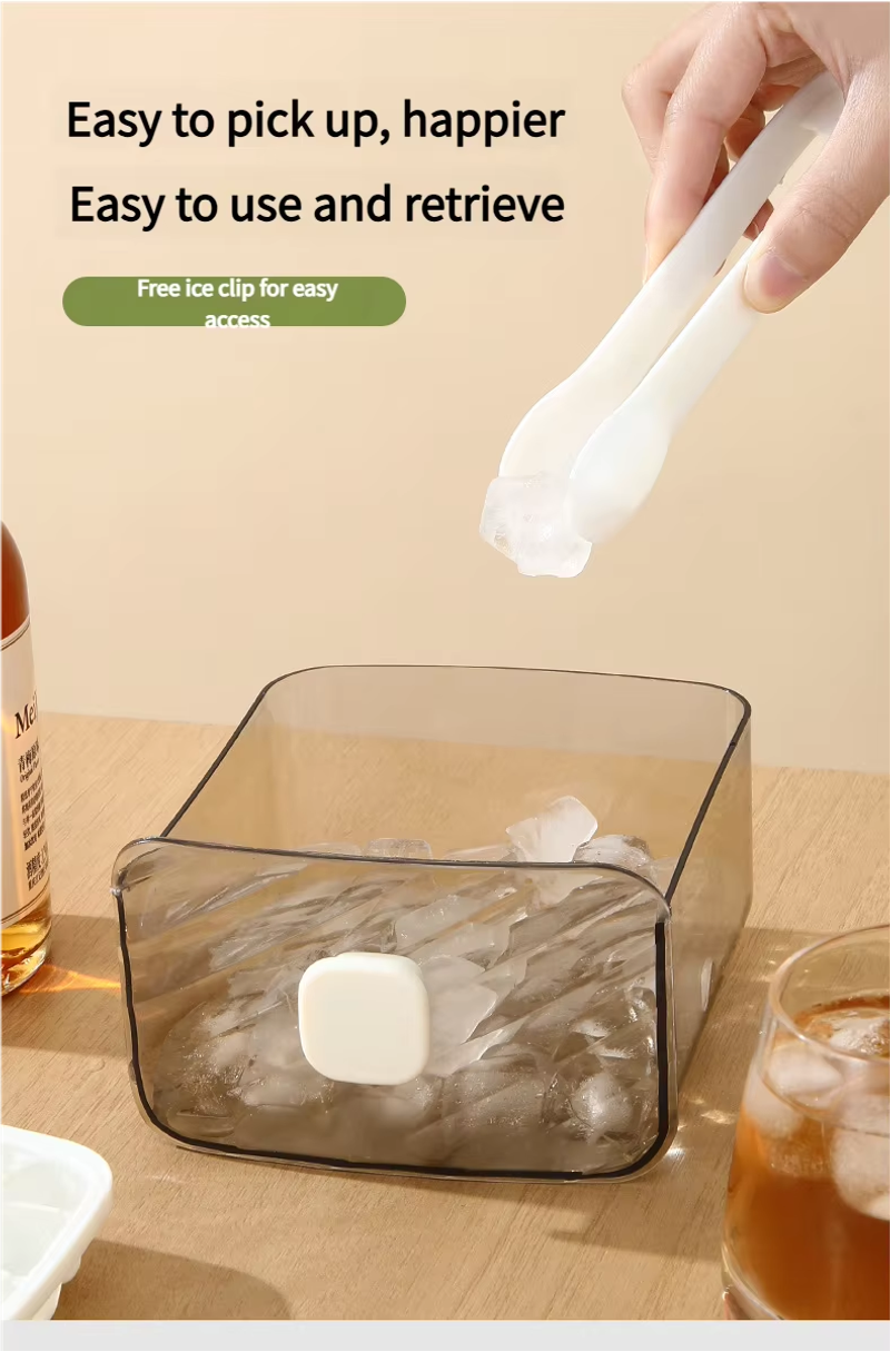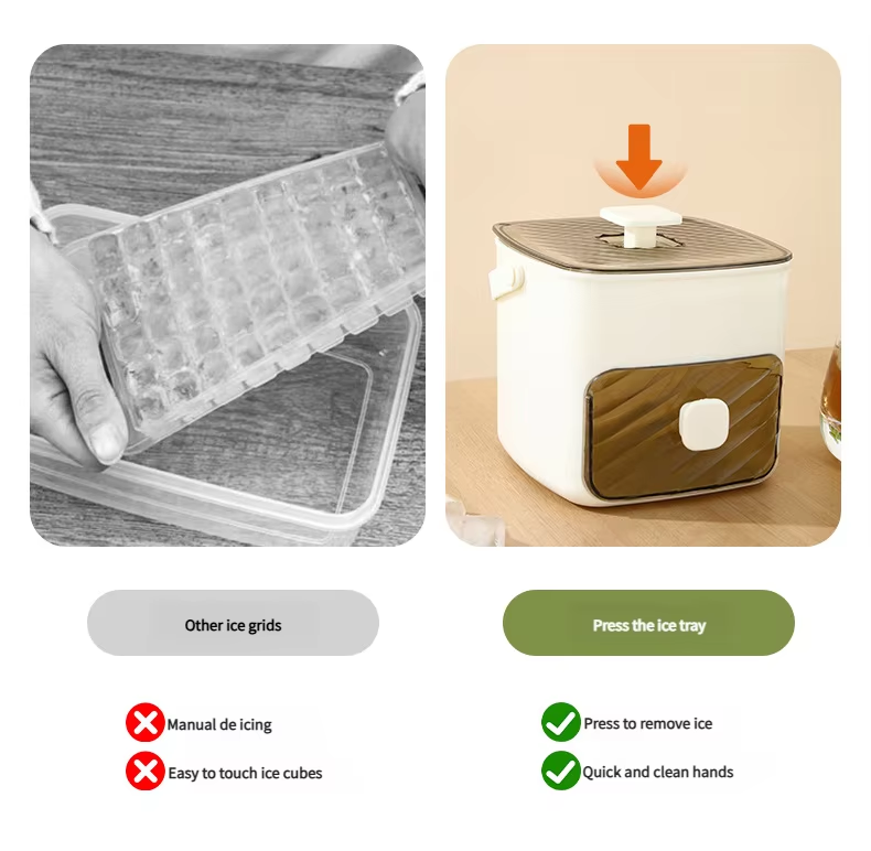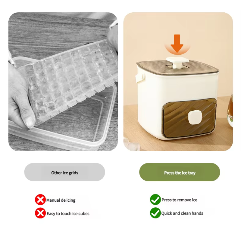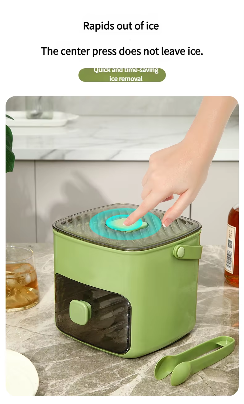Press-to-make ice cube tray, food-grade silicone mould with easy-release design and lid, comes with a free pair of tongs