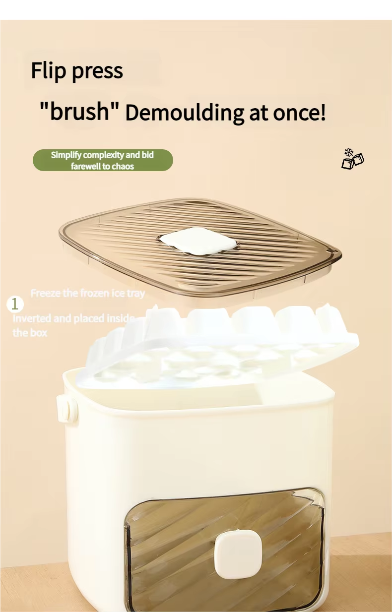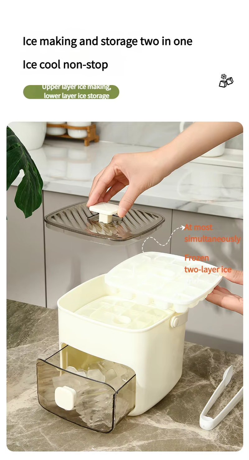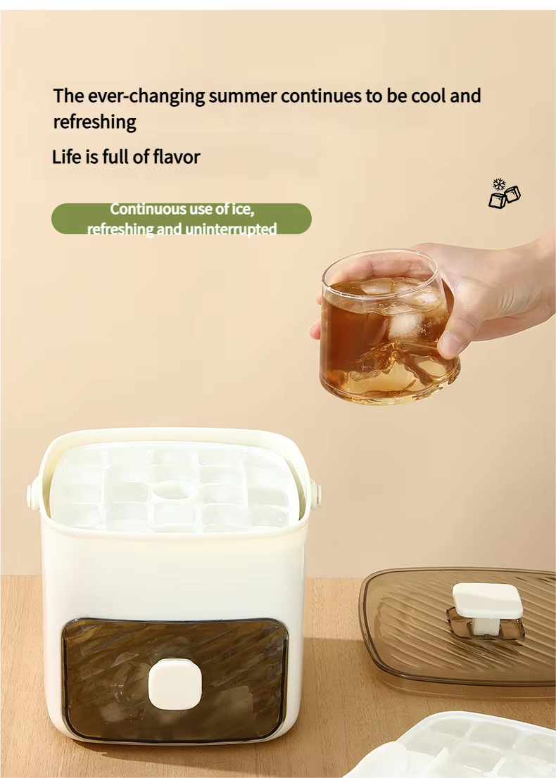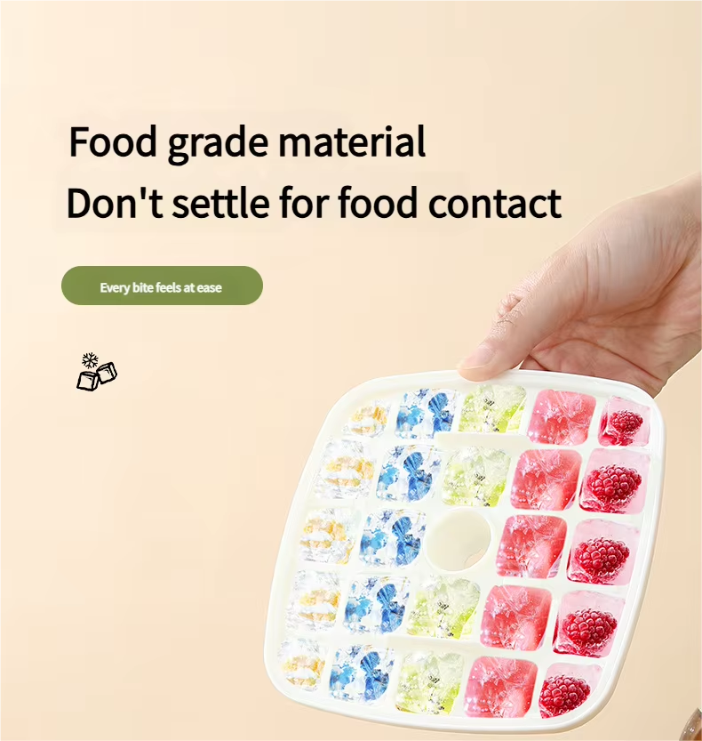 Press-to-make ice cube tray, food-grade silicone mould with easy-release design and lid, comes with a free pair of tongs