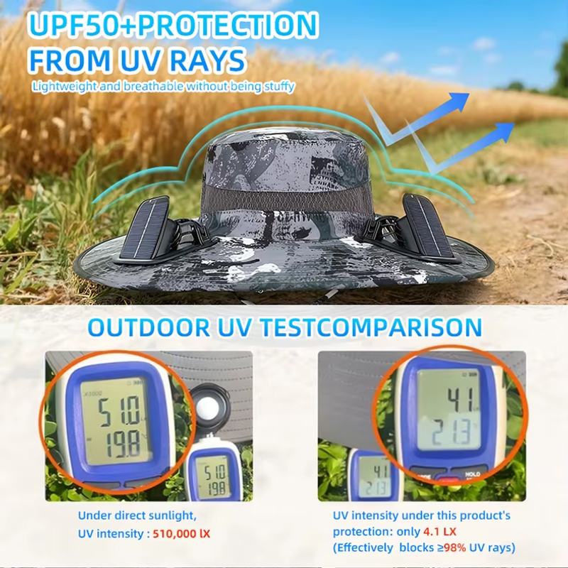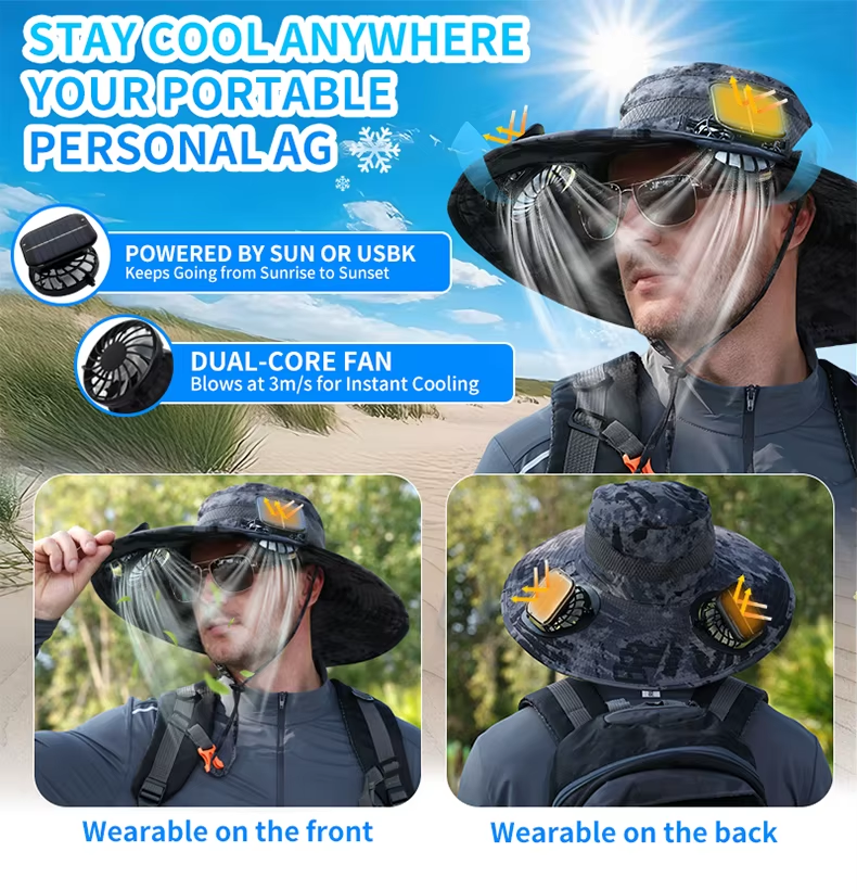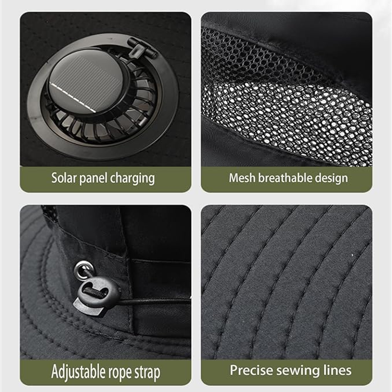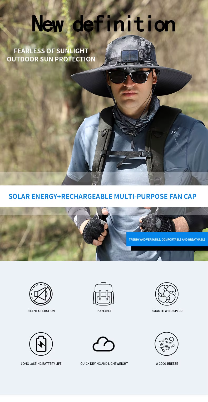 Long-lasting lithium-ion battery fan, solar-charged, high-wind-resistant sun hat, sun-protective fisherman's hat, quick-drying hat Available in a range of colours