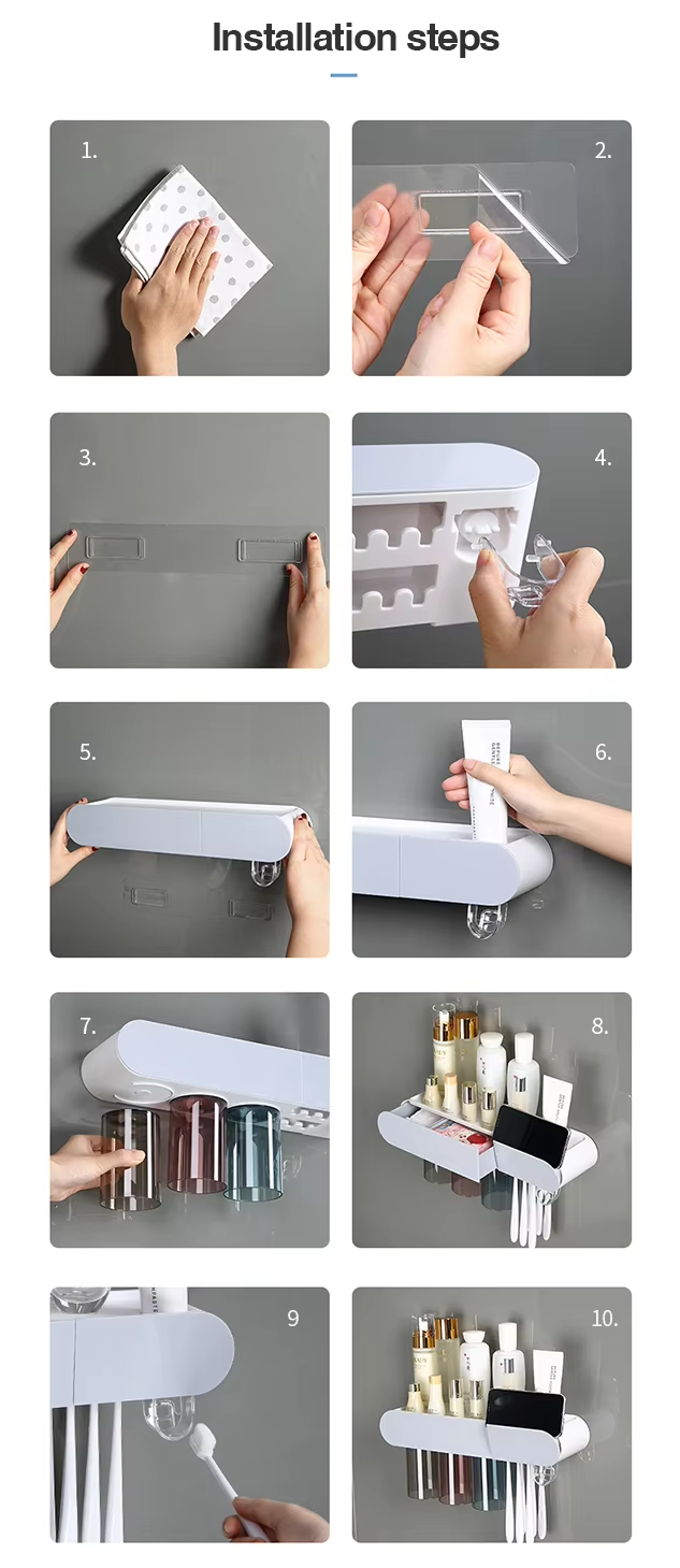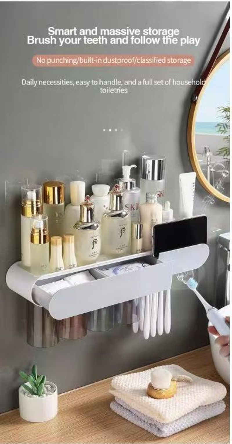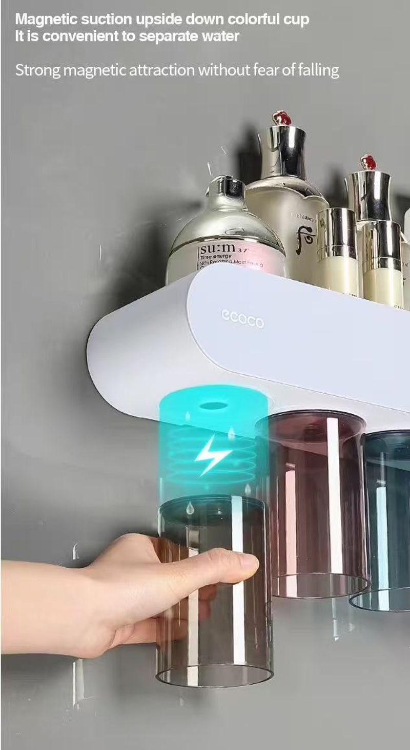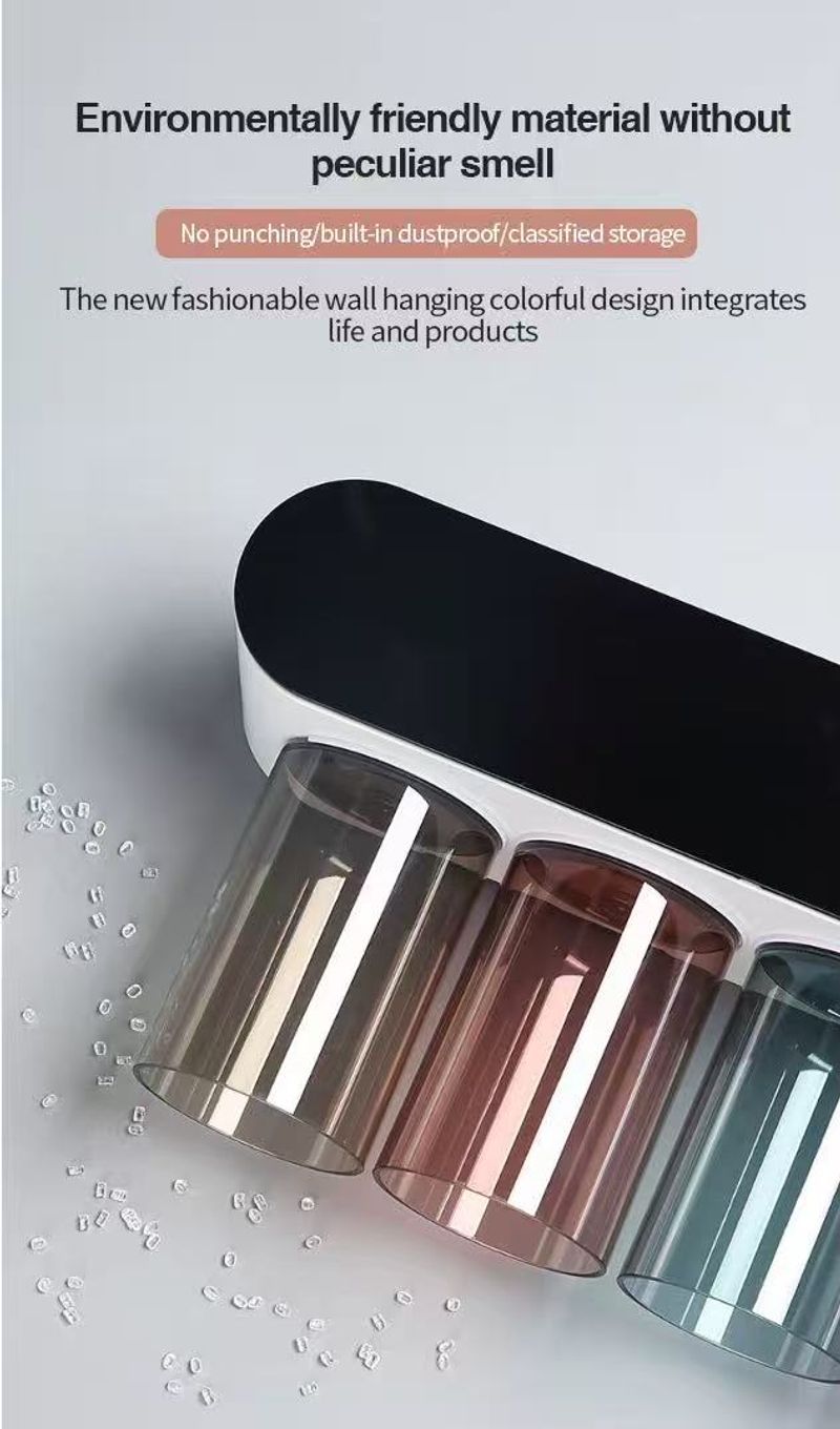 Wall-mounted toothbrush holder with mouthwash and toothbrush cup holdersaniti sing toothbrush cup holder no drilling required