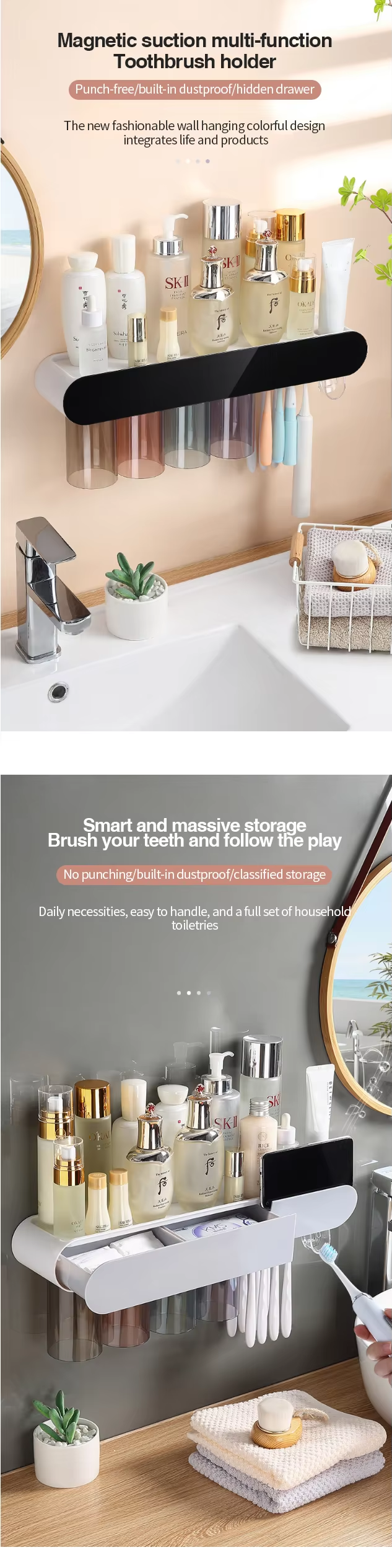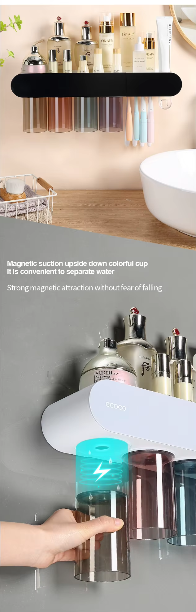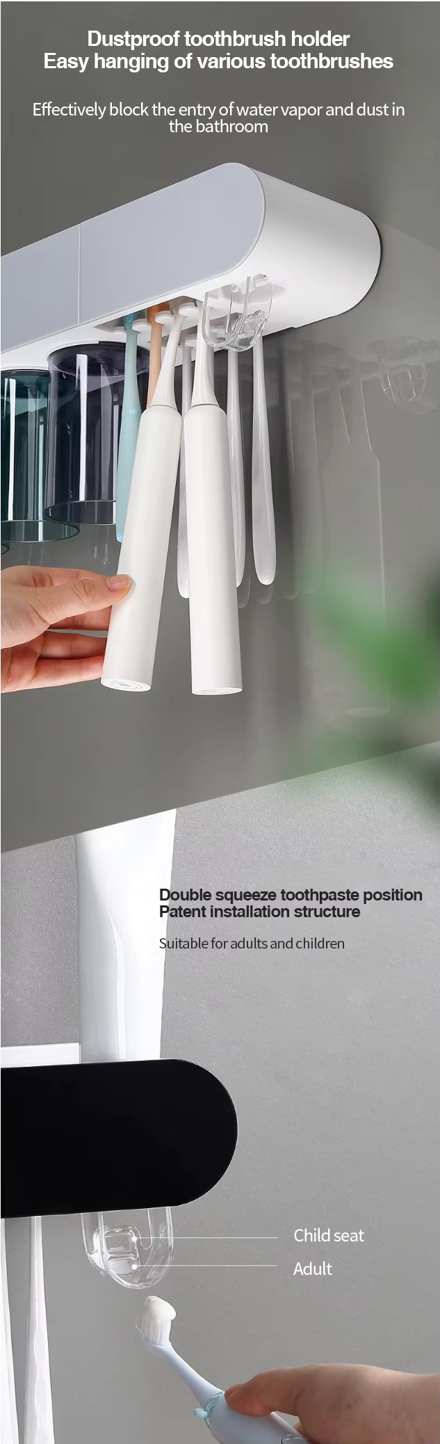 Wall-mounted toothbrush holder with mouthwash and toothbrush cup holdersaniti sing toothbrush cup holder no drilling required
